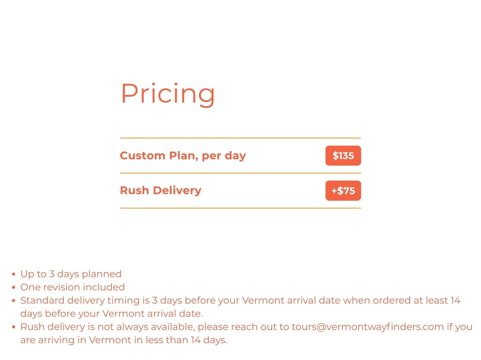 A custom plan for your Vermont trip built by a local who knows the roads, the best stops, and the timing that makes a day feel right.